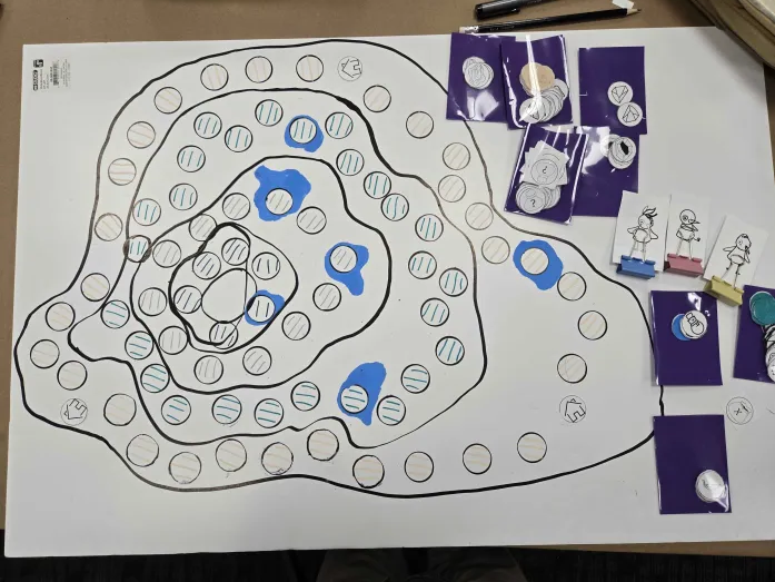 We identified the core loop as explore → collect → earn feathers → climb. This progression became the backbone of our analog mechanics and shaped how players would move through the board.